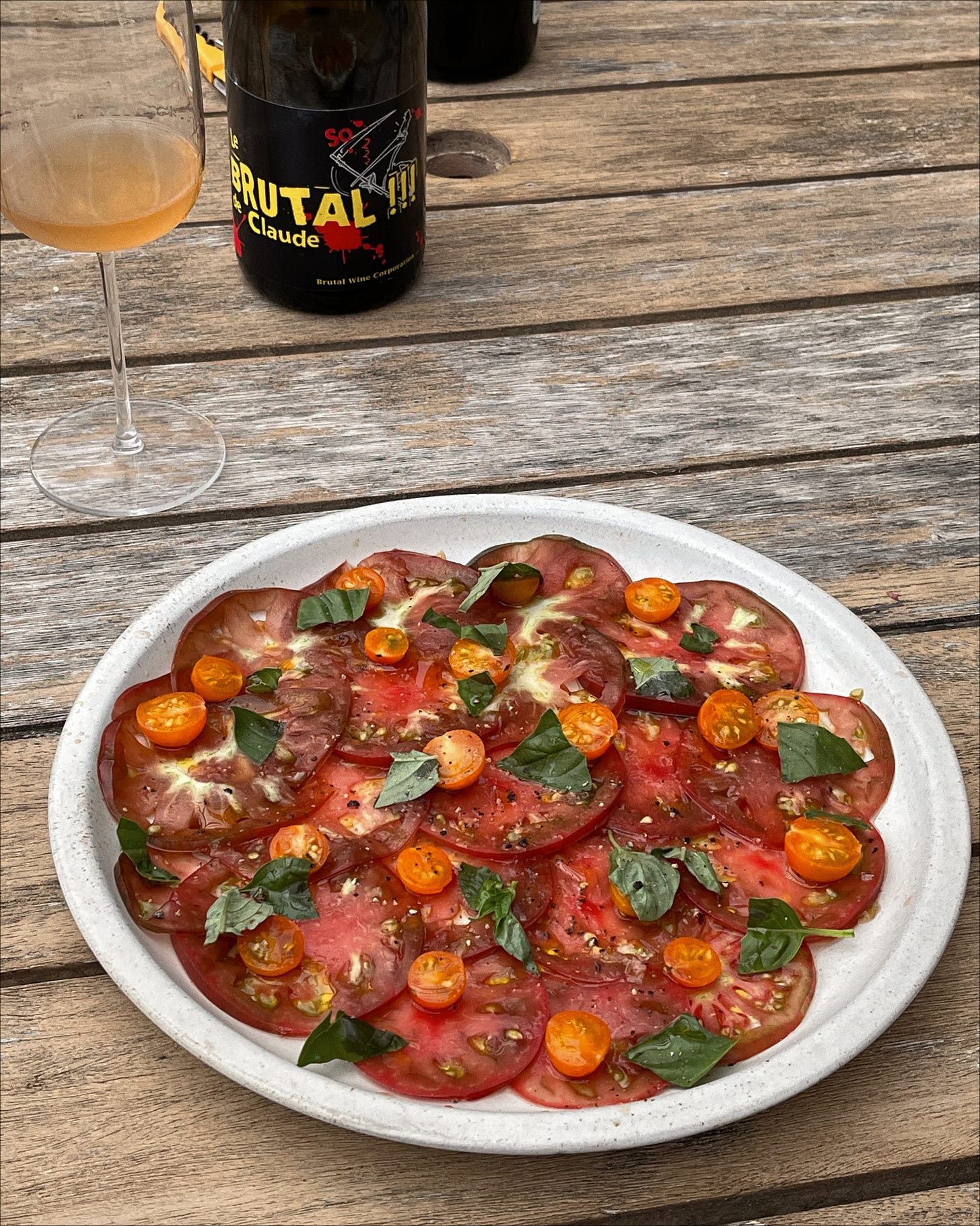 I enjoyed this heirloom tomato carpaccio on a porch upstate with friends and that’s what summer is all about. I’m still on my GO AND GET TOMATOES FROM THE FARMER’S MARKET bullshit because tomatoes are a big metaphor for the ephemerality of summer and the short but sweet—ohhhhh sooo sweet—time we have in this season. You can pretty much do this any way you want, just have salt, olive oil and acid (we used fish sauce) on handy. Really, make it however you want!