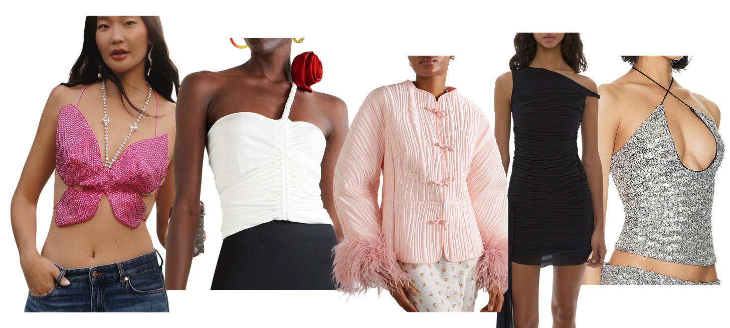 The Area top I wore to their show this season is currently 25% off, this gorgeous Magda Butrym one-shoulder top seems quite versatile, this asymmetrical Helmut Lang top is nothing groundbreaking but has the kind of silhouette and composition that can turn any outfit into a sexier one, this Sleeper jacket is so fun and perfect for transitional evenings where you don’t have to be responsible for a jacket because the jacket is the top!, I kept seeing this fun little sequin number by The Attico on my feed yesterday at their show in Milan and it’s also 25% off!