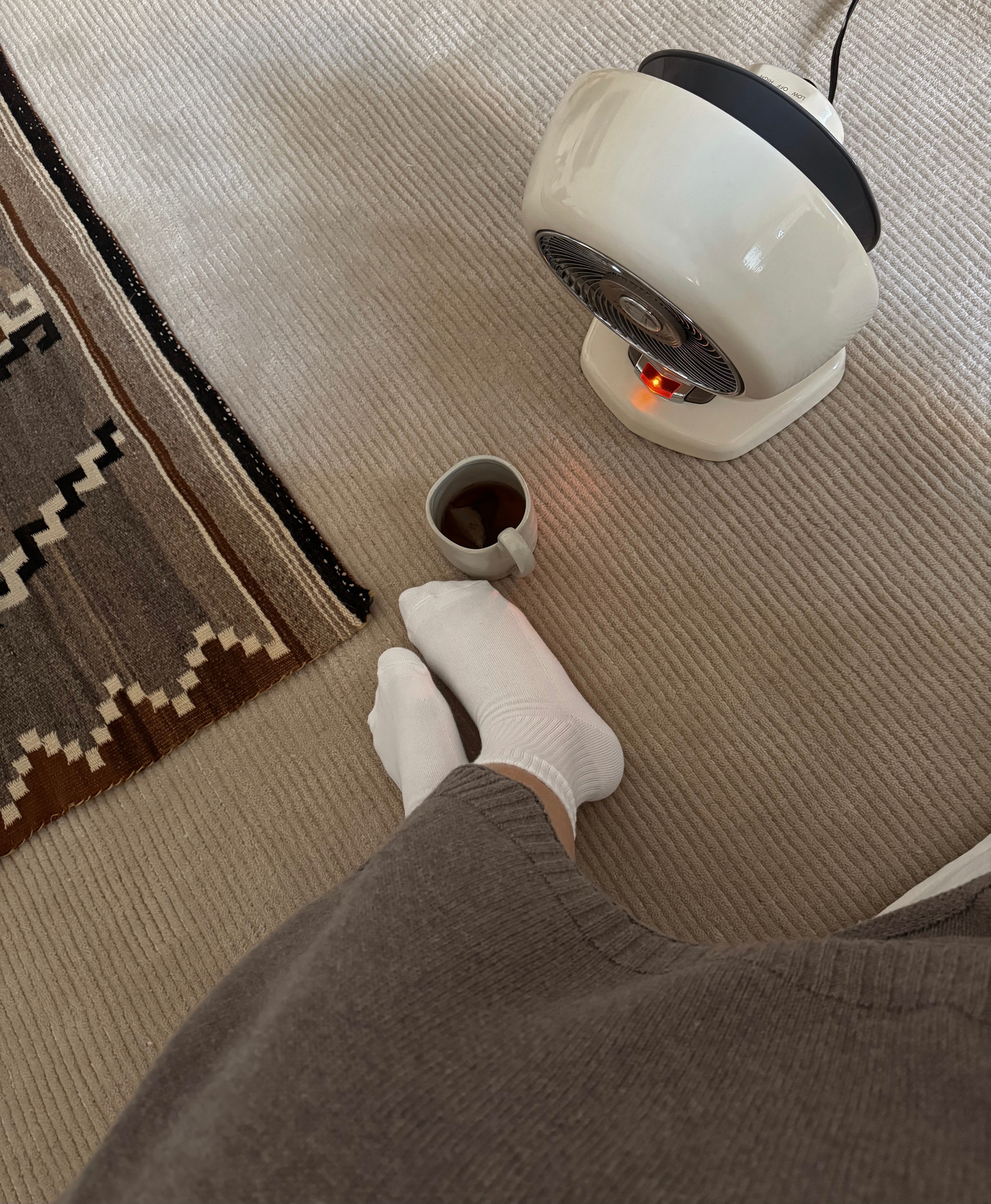 Concentrated heat for sedentary activities at home packaged in a cute, vintage look.