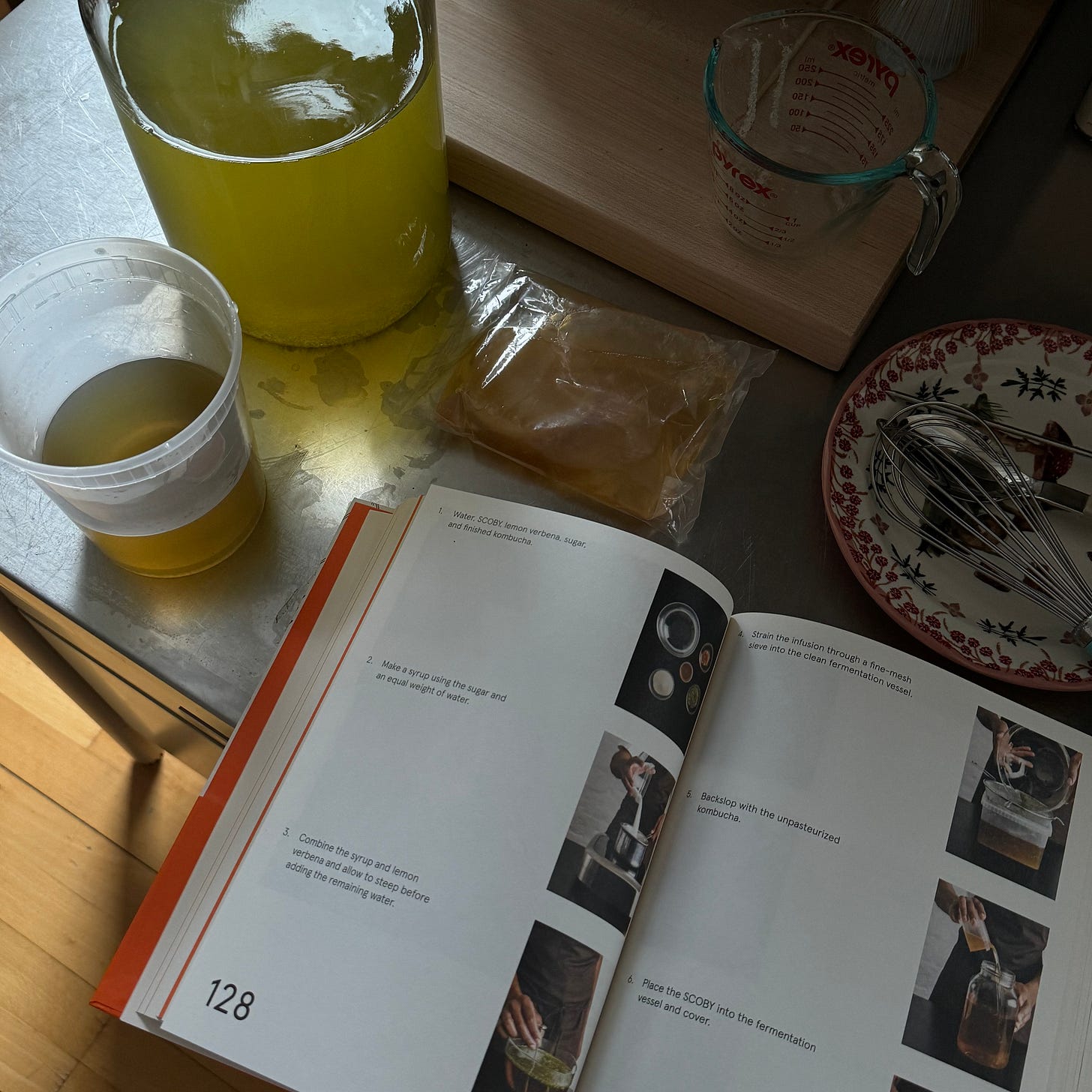 I made my first batch of homemade kombucha in an anxious morning spiral and it’s become a beautiful metaphor on patience and gratitude. The thing about mental spirals is that we have the tools to stop them from going into darker depths. A flow state activity or task has always helped me take my mind off of senseless overthinking that amount to no truths. The activity I chose was making my own kombucha, which is really not as crazy or complex as it sounds. It’s something I’ve been wanting to make at home for years after trying almost every nouveau niche brand of kombucha with impeccable branding. I started a batch when I was home in Seoul but never saw it materialize into its final form as I left for New York just four days after starting the brew. (My mom and sister have been tending to it and they’ve reported it’s a success, currently undergoing its carbonation stage!) After realizing just how easy it is to make at home, I got my own batch going and the process of brewing the tea and getting it going was the antidote I needed to stop my brain from spiraling. It was like a little science experiment I stayed very focused on perfecting. I’m currently on day three of my first fermentation and while I have about a week to go, and then an additional few days after that for carbonation, this wholesome tending to an active culture is a lesson in nipping bad thoughts in the bud and taking things slow. I’ve already grown attached to my SCOBY. If you’re feeling inspired, I personally love Noma’s Guide to Fermentation, a beautifully presented collection of fermented recipes from the former #1 restaurant in the world, and The Art of Fermentation, the more bare bones OG guide to all things fermentation.
