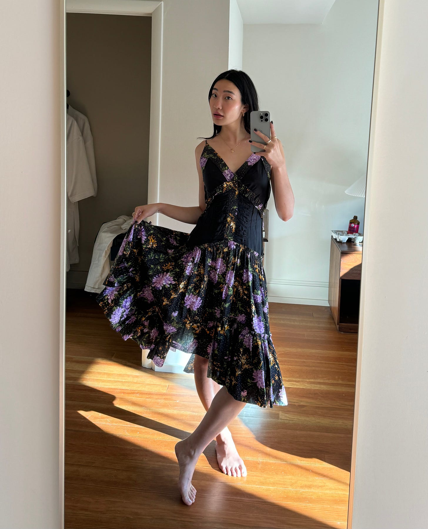 There is something that is truly satisfying about reaching for a piece over and over again knowing that no matter how many times you wear it, you still feel just as good as when you first put it on. I’ve been thinking a lot about who I want to be this summer through dressing, through vibes, through the content I put out. And before I let my mind wander to all the pieces I have in various shopping carts across the web, across my various tabs on my browser, I am reminded of the pieces that keep me grounded during these summer months. The ones that aren’t compulsively purchased. The ones that aren’t as much “staples” as they are the highlights. And they’re usually made of cotton poplin and they’re usually dresses! Something to keep in mind when you’re getting excited about dressing for this season… What do you already have in your closet that maybe hasn’t seen the light of day in months, or even years, that makes you feel really really good? Though, I did purchase this majorly discounted Nicholas number that I think will reach highlights-status soon.