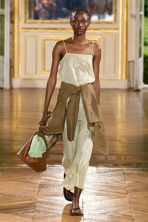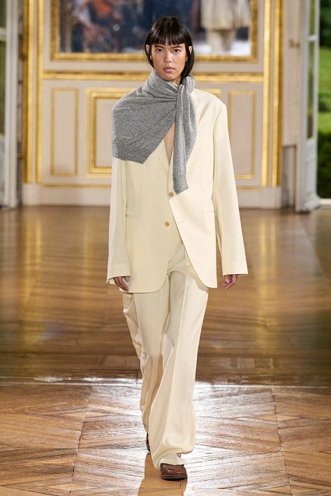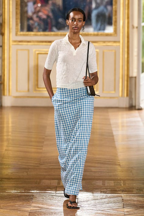 I can’t stop thinking about the Auralee spring 2025 menswear show in Paris. Word on the street is that it was the show of the season and for good reason. I love the brand’s continuous mastering of the use of color, layering and perfect proportions. The show had all the elements of true wearability, weaving in this narrative of an idyllic yet simple and relatable life. Designer Ryoti Iwai said his inspiration for the collection comes from his fascination with parks and how “people from all walks of life gather in them. There are readers seeking a quiet space, commuters with briefcases and headphones, intellectual newspaper readers, and nonchalant passersby. The common thread is that they’re all out there looking for something.” This is exactly how I seek to live my life—one of ease and comfort, of intentionally carving out time to enjoy a beautiful day in the park amidst a crazy schedule and a crazy life. That there is perfect harmony in all these moments and yes! It is possible to look chic through it all.