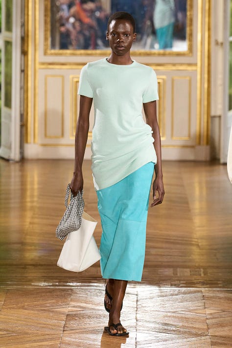 Some Auralee pieces that I’m now eyeing that are on sale: a structured midi skirt in the most perfect shade of summer green, an everyday blazer to carry you through every season, lightweight linen-cotton trousers in a gorgeous butter color, a sheer gauzy dress that will make me feel my power