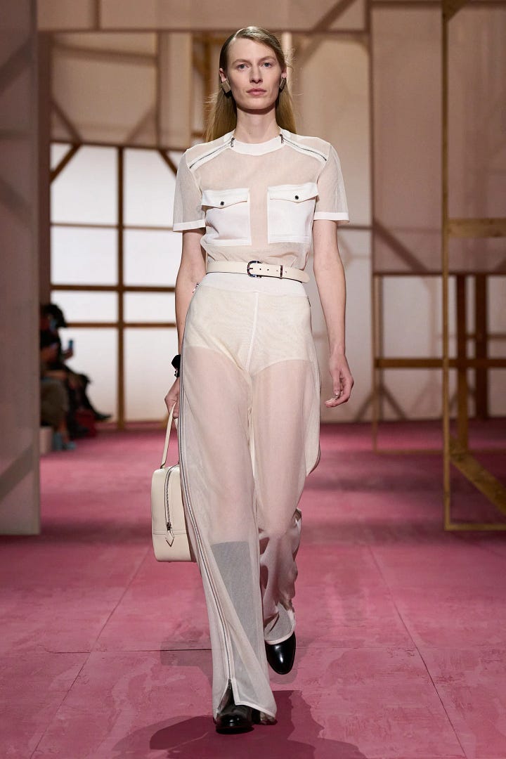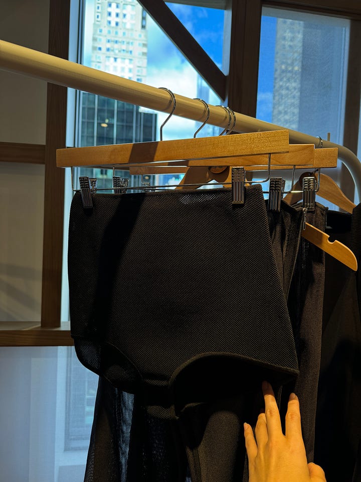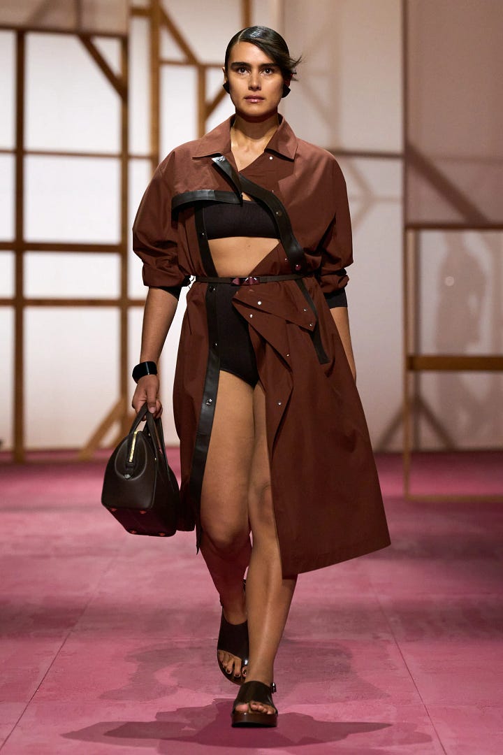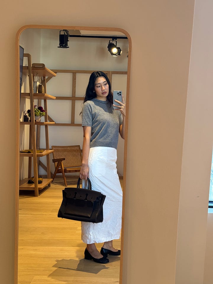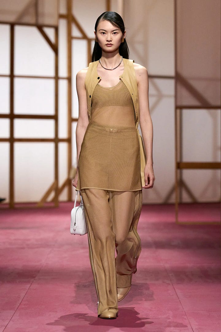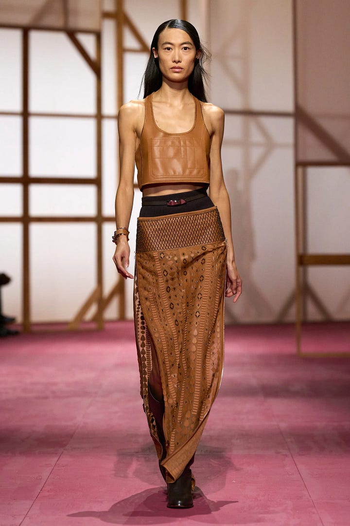 I went to the re-see of Hermès’ SS25 collection, which was exciting to be recognized and invited by the mega heritage brand. A re-see is basically where you’re invited to preview the upcoming collection that just showed on the runway and get to touch, feel, try on and get personal with the garments and accessories. It’s also a fun opportunity to hang out with the brand and other friends of the house, which is what we all did on a glorious mid-week morning munching on fashion (doll-house sized) bites and green juice. There was an understated sexiness and playfulness in the ready-to-wear collection that perfectly complimented the classiness of the leather accessories that we all know and love from Hermès. Trends we saw in seasons’ past like sheer everything and undergarments-as-clothes made an appearance, affirming that these trends are here to stay. I got to see up close and personal the famous inside-out Birkin as well as the Cabas Corricolo tote with rows of fringed horsehair, an effect that looked both wildly playful and elegant at the same time. There was a very palpable warm overtone to the collection that creative director Nadège Vanhee described so perfectly as “assertive sensuality”. I’ll turn 30 next summer and as I grow older and more confident in myself, the summer season is all about reconnecting with my body and the relationship I have with my skin. This collection was the perfect homage to that and perhaps I’ll play around with these themes next summer.