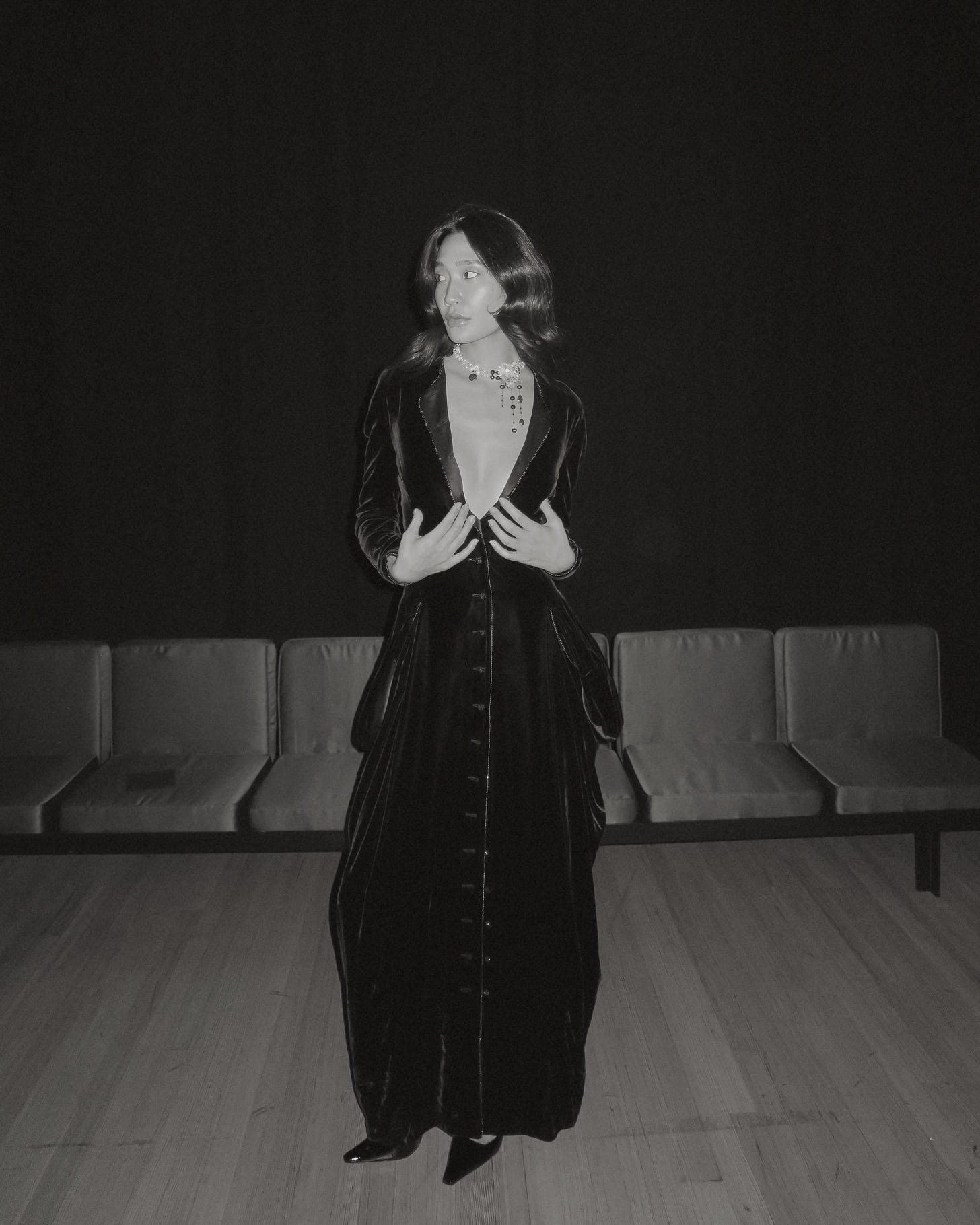 I celebrated big with Giorgio Armani at the Park Avenue Armory. Giorgio Armani made a splashy return back to New York City with the opening of their new 12-story ARMANI/Madison building that houses a new flagship boutique, a home (Armani Casa) store, a restaurant and luxury residences (sorry, they’re all sold). To celebrate this momentous occasion, Giorgio Armani, at 90 years old!, went all-in to show the brand’s spring/summer 2025 collection with an audience of 650 guests, which was really wild in actuality. The guests, ranging from mega celebrities to friends of the house to New York socialites to little tastemakers like myself, were dressed in black-tie, many of whom were dressed by the brand of course, and celebrated the legacy of Giorgio Armani’s near half a century career. It was a larger-than-life event that included an afterparty and then an after-afterparty at Bemelman’s that went all night long. Guests kept their black-tie garb on the entire evening, dancing and drinking the night away into what will surely be one of the most memorable parties of the year. I don’t think I’ve had that much fun at an event in a long time and I’m reminded of how special the act of dressing up can be especially when you’re filled in a room full of beautiful creatives genuinely have a good time with zero pretension. James Blake and Chaka Khan performed at the afterparty and the legendary DJ duo Soulwax got everyone in a groovy mood at the after-afterparty. Everyone’s unique and personal take on “Armani black tie” and styling pieces from the house’s archives for a night out on the town was captivating. I wore a beautiful full-length, long-sleeved velvet gown straight from their archives that cinched at the waist, accented by dramatic outside pockets that created the illusion of a renaissance gown.